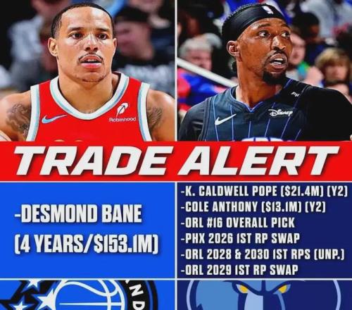 去年夏天休賽期魔術送出波普+科爾-安東尼+四個無保護首輪簽+一個29年首輪互換權,才從灰熊那里挖來貝恩。