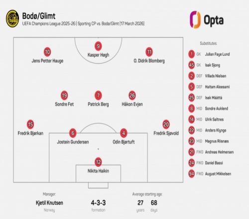 體育播報3月18日宣 歐冠1/8決賽次回合,博德閃耀在客場挑戰葡萄牙體育。本場比賽,博德閃耀的首發陣容足以讓外界驚訝,因為這是他們連續6場歐冠比賽排出了同樣的首發陣容,為賽事歷史首隊。