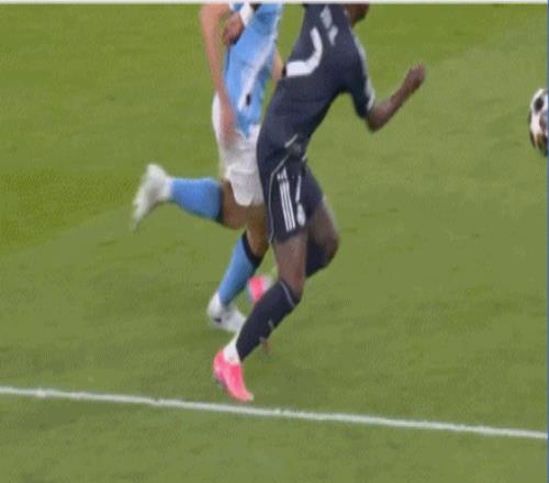 第22分鐘,B席手球紅點,維尼修斯點射,皇馬總比分4-0曼城