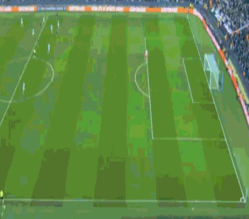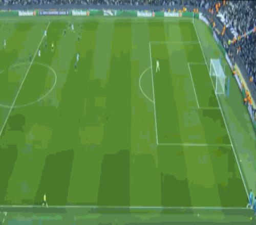 第39分鐘,居萊爾主罰任意球直接打門,皮球擊中人墻飛出底線