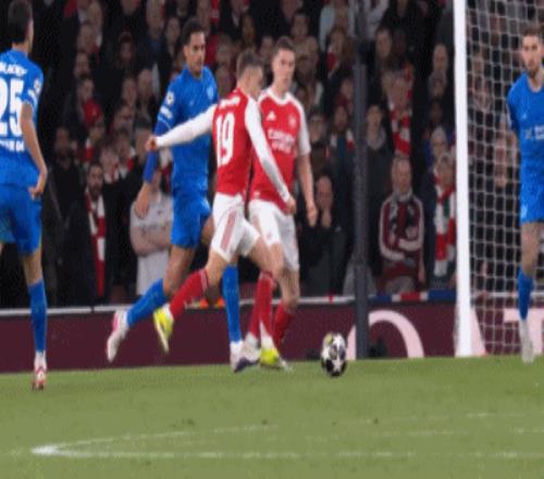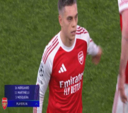第8分鐘,薩卡開(kāi)出角球,加布里埃爾頂在肩膀上出了底線
