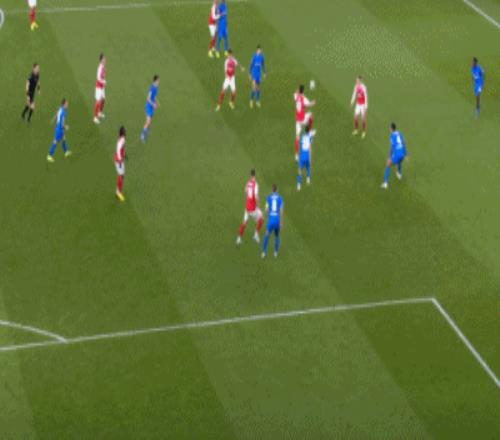 第20分鐘,空間太小,阿森納前場(chǎng)連續(xù)配合被斷