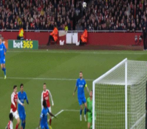 第27分鐘,薩卡禁區(qū)右腳抽射打門(mén),門(mén)將將球撲出底線