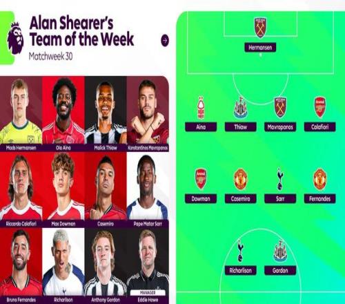 希勒評英超本輪最佳陣容:B費、道曼、里沙利松等人在列 懂球帝 2026-03-18 08:45:50 英超第30輪戰罷,英超官方公布了阿蘭-希勒評選的本輪最佳陣容,布魯諾-費爾南德斯、道曼、里沙利松等人在列。阿蘭-希勒評英超第30輪最佳陣容:門將:赫爾曼森(西漢姆聯)后衛:埃納(諾丁漢森林)、佳夫(紐卡)、馬夫羅帕諾斯(西漢姆聯)、卡拉菲奧里(阿森納)中場:道曼(阿森納)、卡塞米羅(曼聯)、帕普-薩爾(熱刺)、布魯諾-費爾南德斯(曼聯)前鋒:里沙利松(熱刺)、安東尼-戈登(紐卡)【上咪咕獨家看英超】希勒免費觀看_英超免費觀看_曼聯免費觀看_希勒高清在線_英超高清在線_曼聯高清在線 希勒 英超 曼聯 紐卡 道曼 西漢姆 熱刺隊 里沙利松 上一篇: 巴薩又1名億元先生誕生:37場造26球,年齡只有22歲的世界級中場 下一篇: 能否避免利物浦此前從未單賽季歐戰三次輸給同一對手