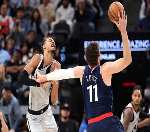 本場比賽中,快船的先發中鋒布魯克-洛佩斯(Brook Lopez)的表現實在是慘不忍睹。洛佩斯全場出場23分34秒,投籃2中1,三分線外1中1,得到了3分1籃板1助攻1搶斷2蓋帽的數據,還有1次犯規,正負值為-15。洛佩斯在進攻端沒有得到什么出手機會,沒有刷出任何的存在感,在進攻端的效果也是非常一般的。進攻端表現不佳也就算了,洛佩斯在防守端的問題更是相當突出,他在移動速度和運動能力方面的不足更是被各種放大,簡直是被對手各種針對。在年輕且天賦滿滿的馬刺球員面前,洛佩斯完全就是防守端的提款機,對手在他面前簡直是予取予求。不夸張地說,洛佩斯的糟糕表現也是在很大程度上導致了球隊的失利的。