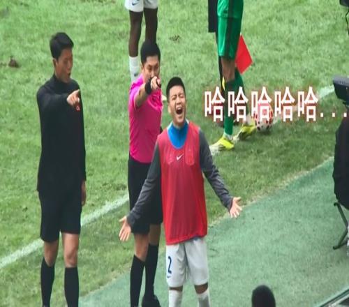 這下,中超的又一名場面出現(xiàn)了——面對中超“金哨”鐵面無私的怒指,這位前廣州隊(duì)后衛(wèi)不僅沒有馬上嚇退,反而一個轉(zhuǎn)身,背身就是一陣仰天狂笑(下圖),以此來表達(dá)心中的郁悶。