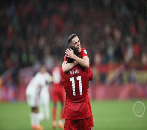 重慶銅梁龍隊進球后,球員慶祝。