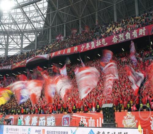 比賽還未開始,重慶球迷在龍興足球場開始了熱身,在聚集了近1萬名鐵桿球迷的龍興足球場南看臺,重慶球迷雙手舉過頭頂,開始一邊鼓掌一邊唱球迷歌,旗手也開始揮舞旗幟進行預演,希望在今晚打造最棒的賽場氛圍。