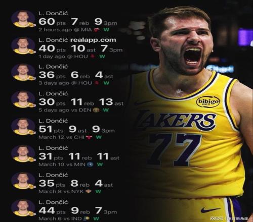 再說說東契奇,這家伙最近簡直是球場上的“得分狂魔”!剛剛背靠背怒砍100分,這操作,就像在游戲里開了無限火力模式。最近還帶著球隊一路狂飆,拿下八連勝,把湖人“送”上了西部前三,自己也順勢沖進了MVP候選人的“豪華陣營”。要說防守,東契奇可能跟前面兩位比起來,就像個“小透明”,但要是論進攻,好多球迷都覺得他就是當今球場的“武林盟主”。東契奇賽季場均能轟下32.9分(聯盟第一的得分王),還能抓下7.9個籃板,送出8.5次助攻(聯盟第三的助攻高手),還能“順手牽羊”搶斷1.6次(聯盟第七喲),正負值是+2.6,命中率也有47.7%/37%/77.2%,球隊戰績45勝25負,在西部排第三。