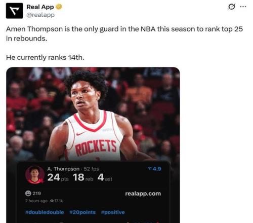 憑借這樣的表現(xiàn),阿門本賽季已經(jīng)搶下538個籃板球,高居本賽季后衛(wèi)球員籃板第一,也是本賽季籃板數(shù)前25名中唯一的后衛(wèi)球員。
