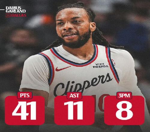 加蘭以首發控衛身份出戰約39分鐘,投籃24中15,其中三分12中8,罰球3中3狂轟41分外加11助大號兩雙數據,帶領快船客場138-131擊敗獨行俠。