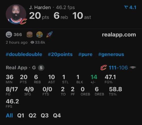 對了,哈登在帶領騎士客場111-106戰勝鵜鶘比賽中,可是以0罰球得到的20分外加10助,正負值+14冠絕全場,人家再次證明了只靠運動戰得分照樣能夠收割比賽。