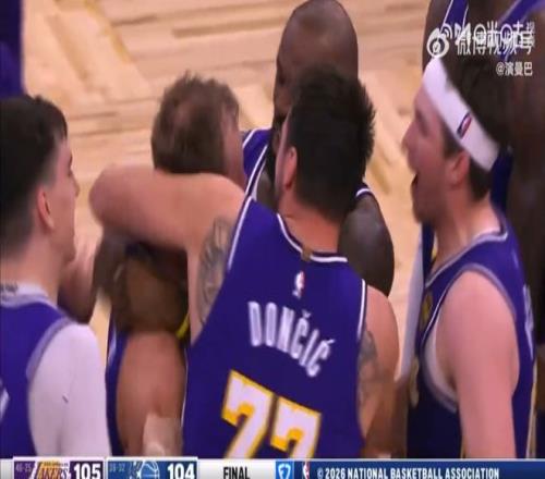 東契奇也沖了過來,湖人三巨頭眾星拱月一般將肯納德圍在中央,也讓這位三分射手激動(dòng)不已。
