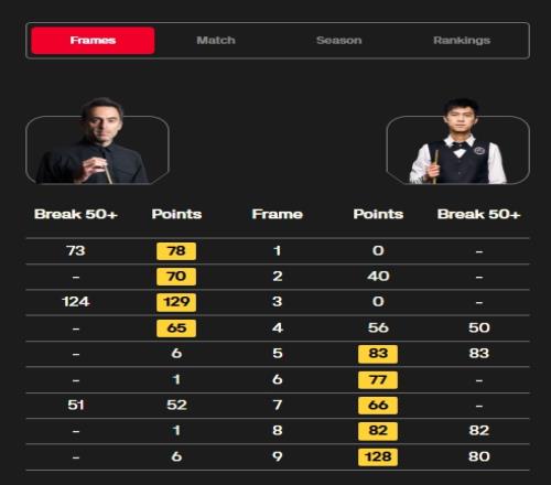 第1階段下半場,第5局,塔猜亞憑借遠臺紅球上手,并打出單桿83分獲勝終于拿下一局,1-4奧沙利文;第6局,塔猜亞多次上手拿下,連追2局2-4追擊奧沙利文;第7局,塔猜亞抓住奧沙利文的失誤,再度單局逆轉,追到3-4;第8局,塔猜亞單桿82分,連追4局4-4追平奧沙利文!第9局,塔猜亞連追5局5-4反超奧沙利文!
