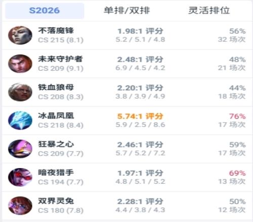 根據數據統計,目前Zeus在進入2026年后玩的最多次數的前七個上單英雄中有5個都是長手,特別是近期開始苦練冰鳥上單,勝率頗高