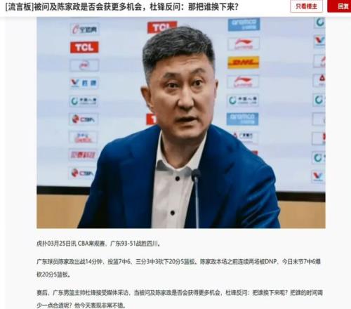 但是杜指導(dǎo)的發(fā)言卻是,“他上了把誰的時(shí)間讓給他”,這樣的發(fā)言讓球迷們非常不滿,陳家政的表現(xiàn)比胡明軒、張皓嘉、杜潤旺都好,為什么就不能多給一點(diǎn)上場的時(shí)間,球迷們都是提出來了疑問句,難道年輕小將在廣東真的就打不上球嗎?