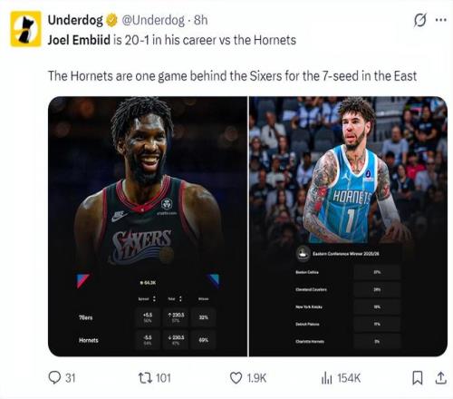 這場比賽之前,恩比德職業生涯面對黃蜂的戰績是20勝1負,可如今的黃蜂已經蛻變,這支黃蜂已經沖到東部第七的席位,而且年輕的黃蜂勢頭很足。沒想到最終黃蜂還是敗在了苦主恩比德的手下,此役后恩比德面對黃蜂21勝1負,黃蜂也從第七掉回第十。
