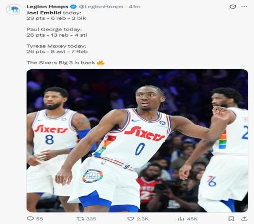 北京時間3月29日,NBA常規賽,費城以118-114險勝黃蜂拿到二連勝。這場比賽后費城與黃蜂拉開2個勝場,費城也領先魔術1.5個勝場。這場卡位戰費城拿下后距離東部第六的老鷹已經沒有勝場差,費城在三巨頭都復出的情況下很有希望重返季后賽圈層。