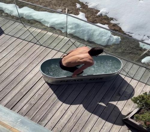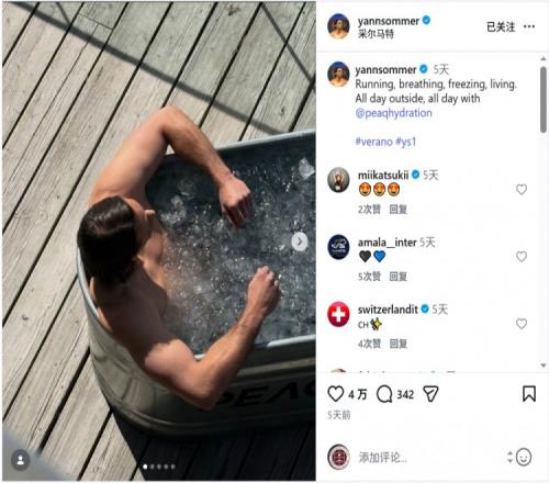 體育播報3月30日宣 國米門將索默更新社媒動態,曬出在瑞士泡冰浴的照片。