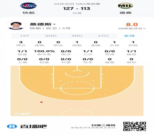 快船次輪50號(hào)秀科比·桑德斯 登場(chǎng)10分鐘