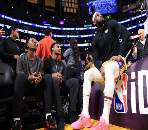 勒布朗:“那簡直太棒了。當時我和妻子在客廳,我用iPad播著布朗尼的比賽,妻子在電視上看布萊斯的比賽,我們同時觀看兩場。我看著布朗尼統治賽場,同時也看到布萊斯和隊友慶祝打進最終四強。我心想,老天,我兒子大一就打進了最終四強,而布朗尼也在不斷進步,做著他該做的事,我完全沒什么可擔心的了。”