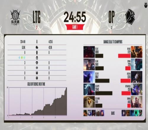 17分鐘LTG拿下先鋒+拆掉中一塔,擴大經濟差到接近5K!隨后下路OP硬開結果被LTG打出1換3!不過chips維魯斯中路掛單被OP下路組強殺!19分鐘中二塔混戰,LTG又是1換2!還拆掉了OP中二塔!20分鐘xiye瑞茲直接單殺掉了Juice蘭博!