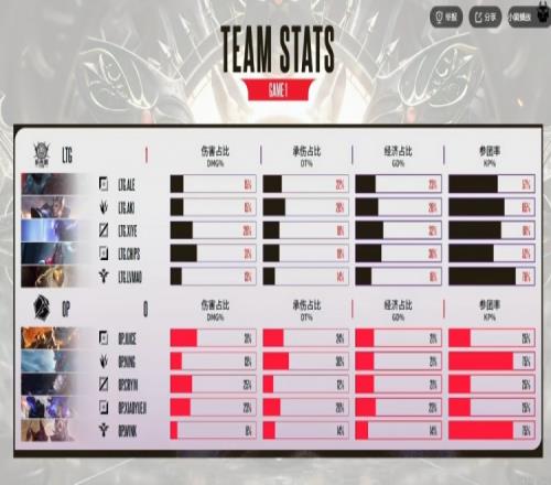 第一局比賽3分鐘LTG交出四個閃現強殺Ning巨魔,給到xiye瑞茲一血!6分鐘Ning巨魔野區白給的同時xiye瑞茲包上也拿到擊殺!LTG先后拿下三蟲+小龍,還依靠LvMao巴德大招強殺掉了Cryin瑞茲!LTG節奏不斷啊!