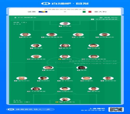 體育播報4月1日宣 世歐預附加賽決賽,波黑主場迎戰意大利比賽即將打響,本場勝者晉級世界杯。賽前首發出爐。