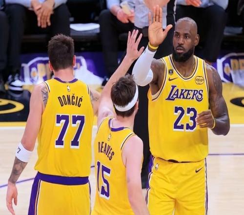 本賽季,盧卡出戰64場,場均33.5分(聯盟第1)+7.7籃板+8.3助攻(聯盟第4)+1.6搶斷(聯盟第6)+4記三分球(聯盟第1)。據NBA官網數據統計,當盧卡出戰時,湖人隊本賽季戰績為43勝21負,勝率高達67.2%;當盧卡缺陣時,湖人隊本賽季戰績僅為7勝6負,勝率僅為53.8%。從某種意義上講,盧卡的腿筋拉傷了,略等于湖人隊的天塌了一半!如果湖人隊想等來盧卡季后賽復出,里夫斯和老詹必須要共同扛起原本屬于盧卡的重擔。