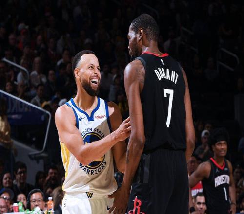 下半場,庫里率隊打出一波11-0,期間包括一次非常出色的2+1。他持球選擇單挑杜蘭特,背后運球想要過掉杜蘭特但沒有成功,然后拉回靠著一個拜佛成功過掉杜蘭特的防守,雖然申京及時補防,但庫里提前一步選擇拋投終結,打進還有加罰!坐在地板上的庫里做出了熟悉的肩膀抖動的動作,這一刻我們知道,那個熟悉的庫里回來了。第三節,庫里單節得到了11分,不過勇士隊還是落后。因為庫里的老隊友,也是老對手杜蘭特做出了出色的回應,后者單節16分,庫里的每一次進攻,或者說勇士隊的每一次進攻他都能回應上。