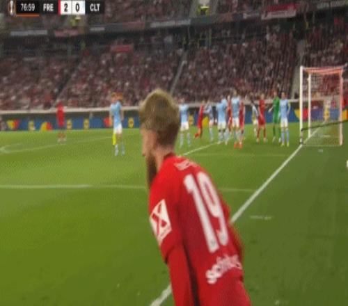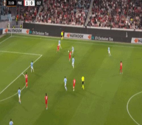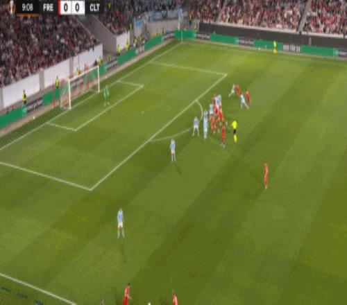 第32分鐘,馬塔諾維奇橫傳,貝斯特一蹴而就,弗賴堡1-0塞爾塔