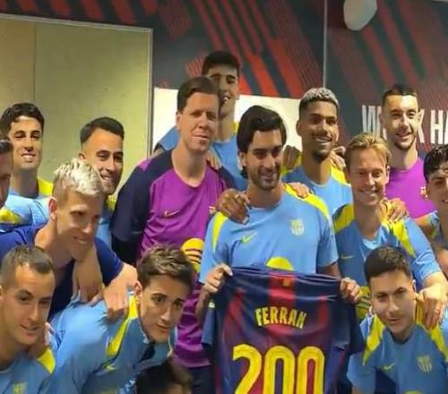 在對陣西班牙人賽前,費蘭托雷斯領取200場紀念球衣 懂球帝 2026-04-11 09:21:03 北京時間4月10日,根據巴塞羅那俱樂部官方發布的視頻,費蘭-托雷斯在巴薩體育城內領取了200場紀念球衣。在西甲第31輪巴薩主場對陣西班牙人的賽前,費蘭-托雷斯領取了200場紀念球衣,領取現場熱鬧非凡,眾多一線隊隊友共同見證了這一榮耀時刻。費蘭-托雷斯現年26歲,德轉身價為5000萬歐元,他在2022年1月加盟巴塞羅那,25/26賽季已代表巴塞羅那在各項賽事出場42次,其中首發26次,貢獻16粒進球的同時送出1次助攻。西甲免費觀看_首回合免費觀看_紀念球衣免費觀看_西甲高清在線_首回合高清在線_紀念球衣高清在線 西甲 首回合 紀念球衣 巴塞羅那隊 費蘭-托雷斯 上一篇: 和教練團隊分享榮譽,弗里克領取西甲3月最佳主帥獎 下一篇: 巴薩舊將談負馬競:10人作戰不是問題,問題是我們在對陣15人