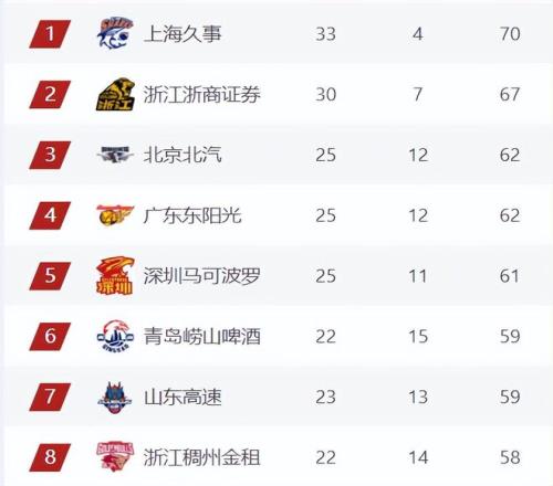 照目前形勢(shì)來(lái)看,CBA常規(guī)賽最終8強(qiáng)球隊(duì)大概率將是上海、廣廈、北京、廣東、深圳、山東、浙江、青島。目前前8按戰(zhàn)績(jī)可分為3檔,上海、廣廈第1檔,北京、廣東、深圳、山東為第2檔,這4隊(duì)將競(jìng)爭(zhēng)2張前四門票,浙江、青島為第3檔。
