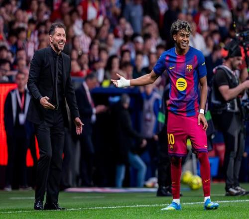 但場邊的西蒙尼依然波瀾不驚,至少在表面上,西蒙尼沒有驚慌,可是他應該感到一些驚慌,因為在這之后,朗格萊又出現了一次失誤,讓右路的亞馬爾終于成為了進攻的關鍵一員,但后點的費爾明沒有將機會頂進去: