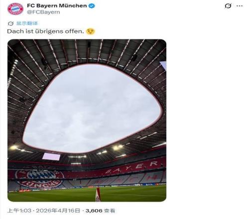 暗諷皇馬拜仁官方曬安聯球場照:順便說一句,屋頂是開著的 懂球帝 2026-04-16 09:33:35 北京時間4月16日凌晨3點,拜仁將迎來歐冠四分之一決賽次回合主場對陣皇馬的比賽,賽前,拜仁官方在社交媒體上曬出了安聯球場的照片,疑似暗諷皇馬在首回合比賽關閉伯納烏頂棚的舉動。拜仁官方在社交媒體上曬出了慕尼黑安聯球場頂部的照片,并配文:“順便說一句,屋頂是開著的”,疑似回應了皇馬首回合將伯納烏頂棚關閉的舉動。在歐冠四分之一決賽首回合對陣拜仁的比賽中,伯納烏的頂棚關閉,根據此前《阿斯報》的報道,拜仁在賽前向歐足聯表達了對在室內比賽的不滿,稱會產生噪音和環境壓力。拜仁免費觀看_對陣免費觀看_皇馬免費觀看_拜仁高清在線_對陣高清在線_皇馬高清在線 拜仁 對陣 皇馬 安聯球場 皇家馬德里 圣地亞哥·伯納烏 上一篇: 名記:82、貝林、居萊爾、卜拉欣將首發搭檔中場,皮塔奇替補 下一篇: 莫雷托:埃克托福特可能會被巴薩加入巴斯托尼的轉會