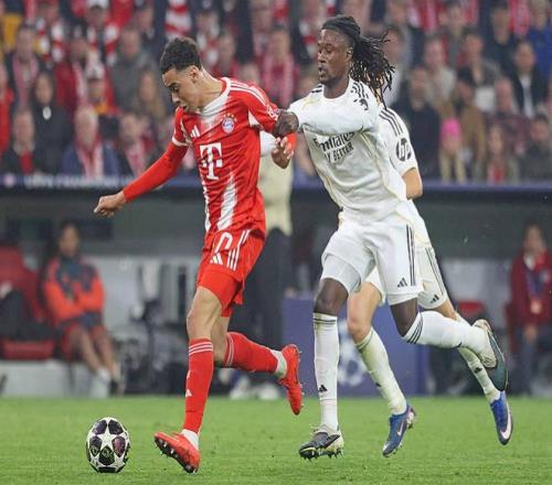 第6分鐘,拜仁開出角球,帕夫洛維奇頭球破門,拜仁總比分3比2領先;第30分鐘,皇馬獲得任意球,居萊爾的射門直掛死角,總比分又一次被扳平;第38分鐘,于帕梅卡諾斜塞禁區,凱恩抽射,總比分變成4比3;第42分鐘,皇馬快速轉換,維尼修斯左側突入禁區,皮球送到拍馬趕到的姆巴佩腳下,后者一蹴而就……整個上半場兩支球隊都完美詮釋了自己的進攻能力,尤其是皇馬,在數據不占優的情況下,始終在進球上領先一步,單場3比2,總比分4比4,客場逆風翻盤看上去并非不可能。