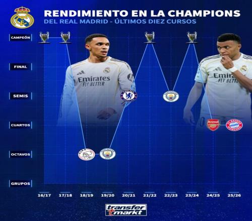皇馬近10個(gè)賽季歐冠成績(jī):4次奪冠,近2個(gè)賽季皆止步8強(qiáng) X 2026-04-16 20:25:04 體育播報(bào)4月16日宣 歐冠1/4決賽次回合比賽,皇馬客場(chǎng)3-4不敵拜仁,兩回合總比分4-6出局。德國(guó)轉(zhuǎn)會(huì)市場(chǎng)盤點(diǎn)了皇馬近10個(gè)賽季的歐冠成績(jī)。皇馬近10個(gè)賽季歐冠成績(jī)16-17——冠軍17-18——冠軍18-19——16強(qiáng)19-20——16強(qiáng)20-21——4強(qiáng)21-22——冠軍22-23——4強(qiáng)23-24——冠軍24-25——8強(qiáng)25-26——8強(qiáng) 足球免費(fèi)觀看_西甲免費(fèi)觀看_歐冠免費(fèi)觀看_足球高清在線_西甲高清在線_歐冠高清在線 足球 西甲 歐冠 皇家馬德里 上一篇: 阿斯報(bào)封面:皇馬帶著尊嚴(yán)告別歐冠,裁判決定比賽 下一篇: 被打成罪人!卡馬文加社媒被噴6萬(wàn)多條:建議退役、滾出皇馬