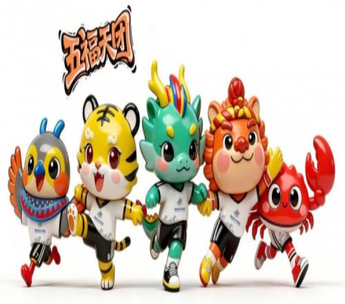 吉祥物:福小龍、福小獅、福小虎、福小蟳、福小雉五只靈獸組成“五福天團”,承載福建各地文化符號與精神內涵,成為賽事萌趣代言人。
