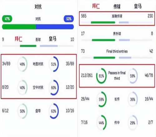 另外一方面,皇馬在一對一對抗時不落下風,這一點讓孔帕尼的球隊一度很難受。不過好在德國球隊的身體還是更勝一籌,哪怕一些常規回合平分秋色,但是在門前的沖擊上,還是拜仁更占優勢。