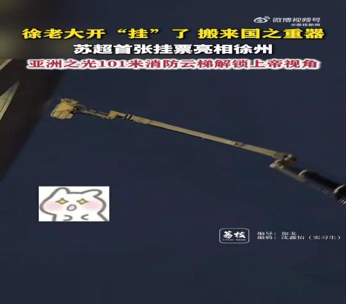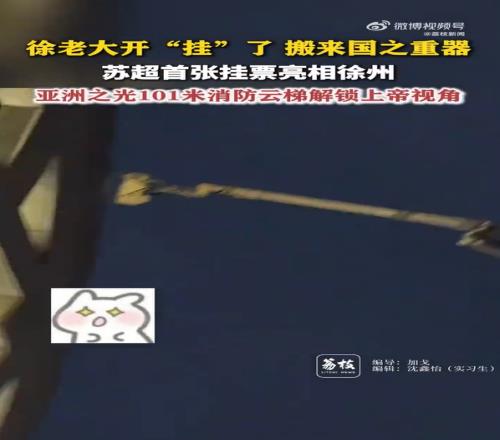 據報道,4月16日,徐州奧體中心體育場外,蘇超聯賽首張“掛票”正式亮相。101米消防云梯化身觀賽臺,將觀賽視角提升至百米高空,俯瞰整個球場,網友直呼“上帝視角”看球太震撼!