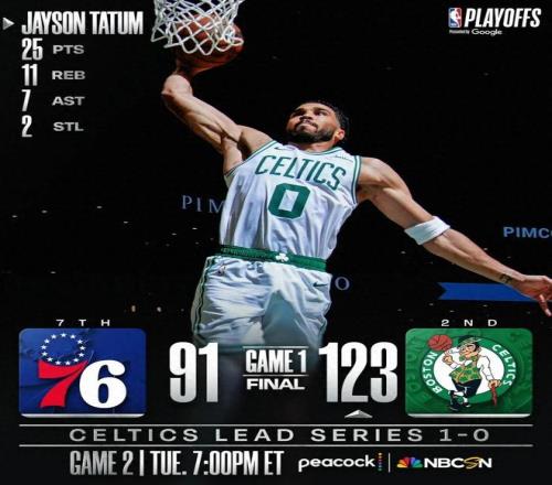 所以,最后的問題留給球迷,在一場123-91的大勝之后,凱爾特人和76人,你更看好哪一隊晉級呢?或者,綠軍今年有沒有機會舉起冠軍呢?