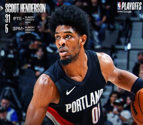 4月22日,NBA季后賽,開(kāi)拓者106比103擊敗馬刺,首輪大比分戰(zhàn)成1比1平,本場(chǎng)比賽開(kāi)拓者球員亨德森表現(xiàn)出色,全場(chǎng)17投11中,貢獻(xiàn)31分1籃板1搶斷,是開(kāi)拓者擊敗馬刺的最大功臣。