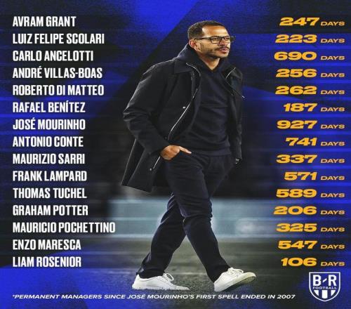 羅塞尼爾的合同長達6年,年薪400萬鎊,英媒聲稱雙方合同有解約條款,切爾西或只需賠償1200萬鎊。羅塞尼爾簽了6年長達2368天的合同,僅履行了106天。2022年夏美資收購切爾西后,迄今不足4年,藍軍已經歷了9任教練,其中正式教練5人—圖赫爾,波特,波切蒂諾,馬雷斯卡和羅塞尼爾,臨時教練4任:薩爾托,蘭帕德之外,U21梯隊主帥麥克法蘭兩度臨時帶隊。
