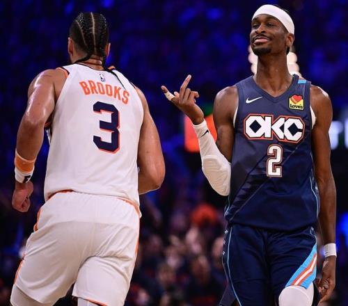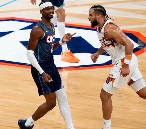 太陽隊有心殺敵無力回天,狄龍對飆SGA,燃盡自己!狄龍出戰38分鐘,23投12中(三分球9中5),罰球1中1,砍下30分+6籃板+1助攻,拼到6犯離場!據統計,這是NBA季后賽歷史上首次有兩名加拿大球員同場砍下30+。SGA贏了數據也贏了比賽,卻沒有贏得狄龍的尊重。賽后,狄龍在接受采訪時嘲諷SGA,他表示:季后賽是男人的比賽,比賽就是比身體對抗,喬丹、老詹都很強硬,但SGA有點軟,我不知道他這些假摔、亂揮手臂的行為為何被允許,裁判需要對此做出解釋。SGA在接受采訪時回應狄龍,他表示:我不在乎他說什么,我也管不了他抱怨什么,比賽很有趣,我很享受。