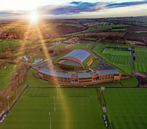 球場與訓練場地:共有21個訓練表面,包括14個全尺寸天然草皮球場。還有一個帶499個座位的泛光燈表演球場,可用于青年隊、學院比賽或女足部分賽事,并配備轉播設施和更衣室。