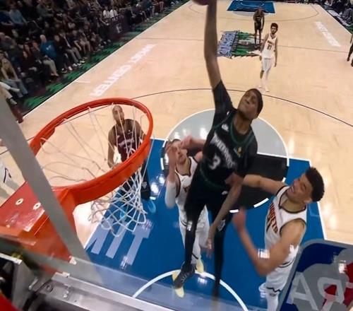 談及隊友麥克丹尼爾斯比賽中完成的一次隔人暴扣,道蘇姆說道:“太炸裂了!簡直無與倫比!我早就說過他只會單腳起跳,那一球他也是單腳騰空完成的。”