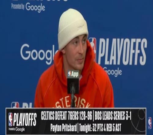 體育播報4月27日宣 NBA季后賽首輪G4,凱爾特人客場128-96大勝76人,總比分3-1拿到賽點。賽后普里查德接受了媒體采訪,以下為采訪全文。