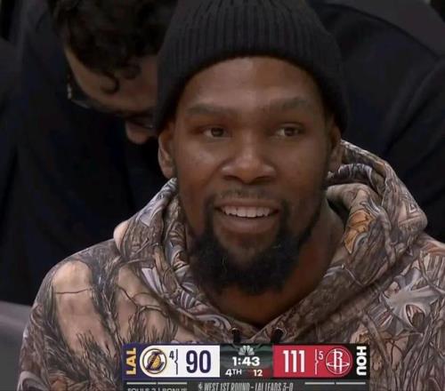 火箭終于贏一場不錯的比賽,阿杜終于笑了,這種笑有種叔叔看到了侄子的進(jìn)步的笑。