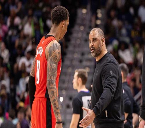 火箭隊現在已經到了輸不起的地步,再輸一場就被淘汰。因此,烏度卡一反常態地在本場比賽中使用了全攻擊陣容,那些投籃能力、進攻能力不佳的球員都被雪藏。出場的8位球員基本上都有不錯的投籃能力和進攻能力。而且本場比賽,火箭隊在進攻端并沒有專注于攻某一點。申京并不是火箭隊進攻端的全部,他試著串聯全隊分球給隊友,所以首發五虎全部得分上雙。