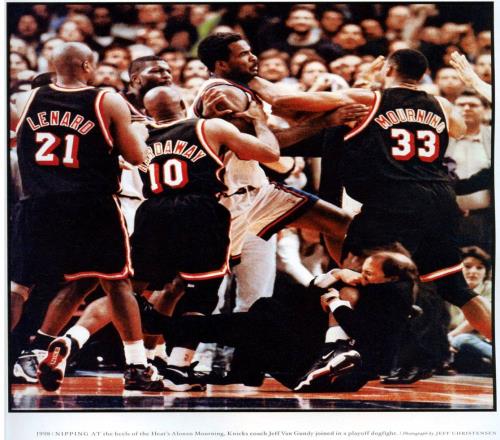 1998-99賽季,聯盟賽季初經歷勞資停擺,因此這是一個縮水賽季,加上喬丹第二次宣布退役,聯盟格局重組;由帕特·萊利領軍的作風強硬的熱火,在聯盟蓋帽王和DPOY莫寧的加持下,躍升為東部霸主。而尼克斯在尤因帶傷出戰的情況下,由“中投王”阿蘭·休斯頓率隊;兩隊在90年代堪稱世仇宿敵,就在上賽季莫寧還與拉里·約翰遜拳腳相向,也誕生了時任尼克斯主帥小范甘迪球場抱莫寧大腿被拖行數米的名場面。